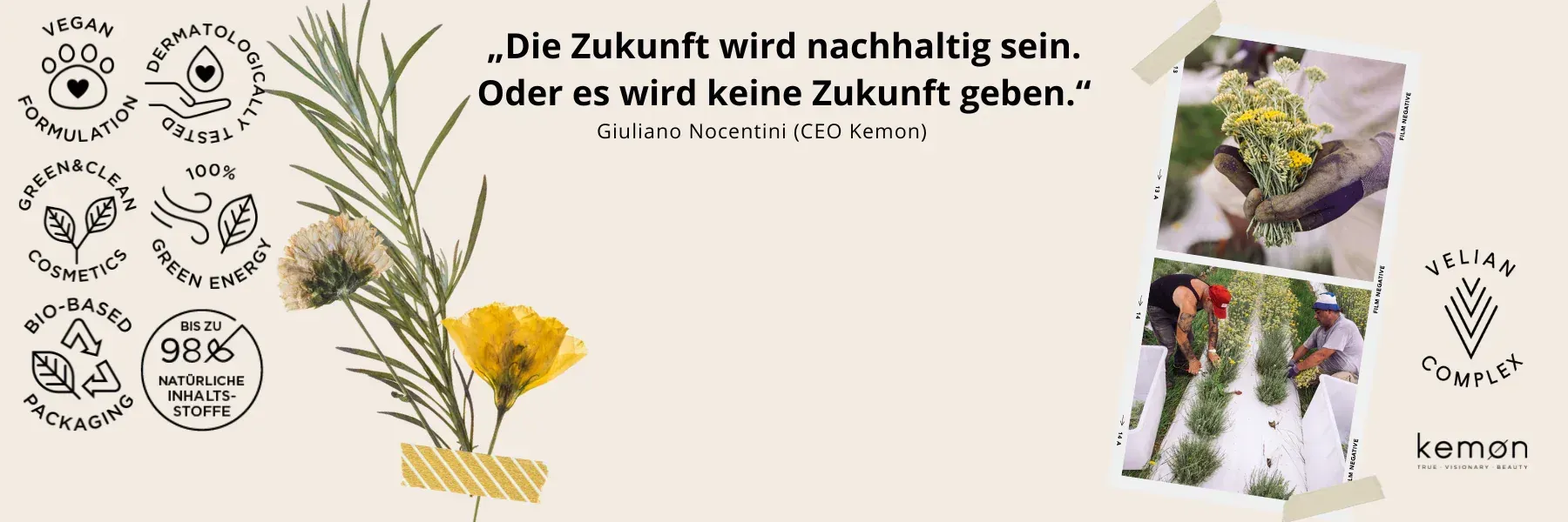 Kemon arbeitet kontinuierlich an der Optimierung seiner Produktionsprozesse, um die Auswirkungen auf unsere Umwelt und den Rohstoffverbrauch weiter zu reduzieren bzw. auszugleichen. Das Unternehmen hat einen sehr hohen Qualitätsanspruch und studiert sorgfältig die in den Produkten enthaltenen, natürlichen Inhaltsstoffe und experimentiert mit den Rezepturen, um die bestmögliche Wirkung und Sicherheit zu gewährleisten. Im Lauf der Jahre hat das Unternehmen hohe Qualitäts-, Umweltschutz- und Sicherheitsstandards erreicht, die bereits seit Jahren von anerkannten Stellen zertifiziert werden. In den betriebseigenen Forschungslabors und Produktionsstätten werden so alle Produkte unter optimalen Voraussetzungen hergestellt.